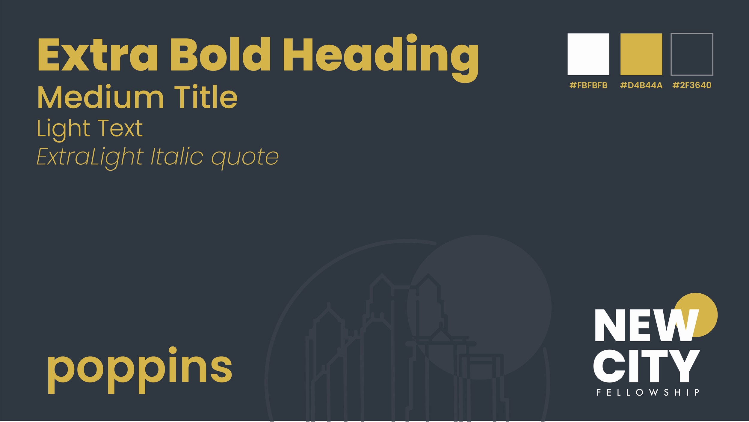 Enter the black and yellow refresh—a fearless, high-contrast identity that radiates energy and confidence. This update moves away from the muted elegance of the past and embraces a clean but bold, urban, and lively aesthetic, ensuring New City Fellowship’s presence is unmissable and visually appealing, while catering to a diverse audience.